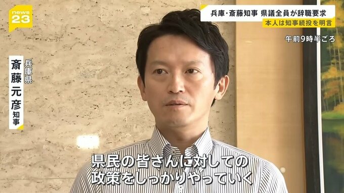 兵庫・斎藤知事 県議全員が辞職要求 本人は知事続投を明言