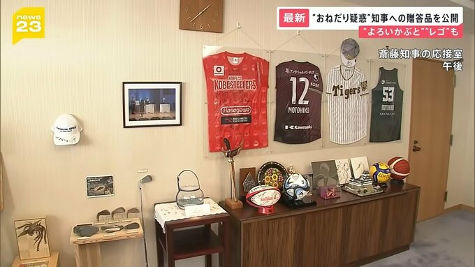 9月12日、兵庫県・斎藤知事の応接室が公開されました。部屋に飾られているのは、斎藤知事が「おねだり」して受け取った可能性が指摘されている贈答品の数々です。