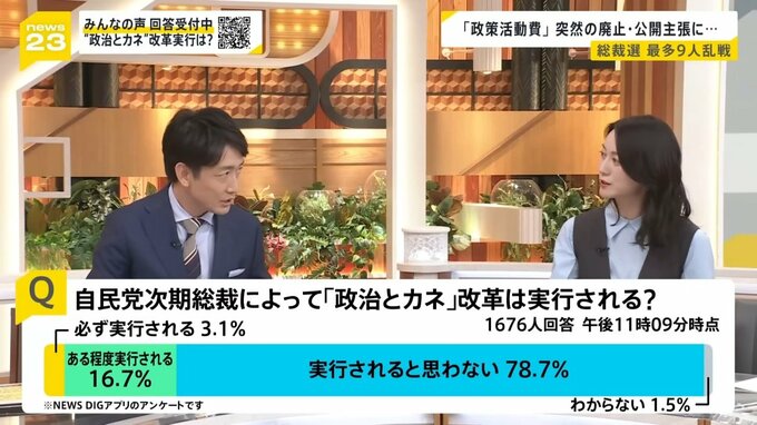 Q.自民党次期総裁によって「政治とカネ」改革は実行される?