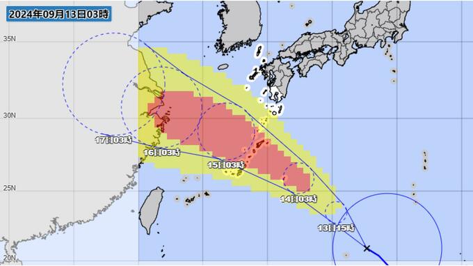 台風13号は、13日午前3時には日本の南にあって、1時間におよそ25キロの速さで北西へ進んでいます。中心の気圧は990ヘクトパスカル、中心付近の最大風速は25メートル、最大瞬間風速は35メートルです。今後は発達しながら日本の南を北西へ進み、14日夕方頃に、強い勢力で奄美地方に最も接近する見込み、奄美地方と沖縄地方では猛烈な風が吹き、猛烈なしけとなる所がある見込みです。(13日午前5時24分 気象庁発表)