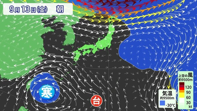 この上層の寒気はあす14日(土)までに弱まるので、台風はこのあと発達をはじめながら奄美・沖縄方面へと進む見込みです。前日までの予想よりは発達しないといってもこれから次第に強い勢力へと発達する予想です。奄美・沖縄方面では大荒れの天気が予想されます。最新の台風情報を参考に台風への備えが必要です。
