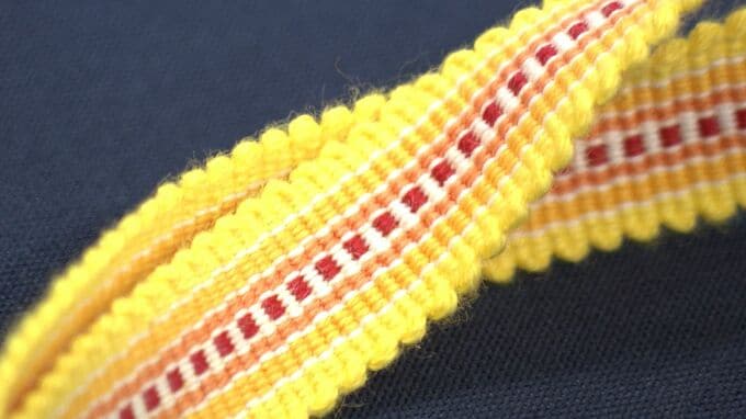 掛け紐には倉敷の特産品である真田紐が使われ、こちらも太陽の光をイメージした黄色が使われています。