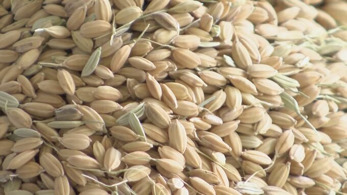 「収穫された米、もみの状態のもの。これをローラーで表面の皮をはぎ取る」