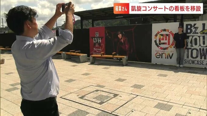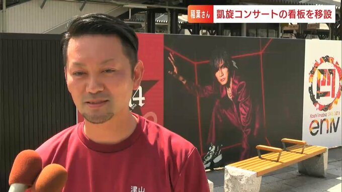 人気ロックバンドB’zのボーカル稲葉浩志さんのソロコンサートが故郷の岡山県津山市で開催されちょうど1か月。コンサートを記念して制作された看板が津山駅に移設されました。