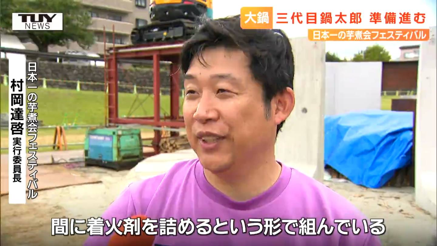日本一の芋煮会フェスティバル 村岡達啓 実行委員長「最初真ん中に井桁に組んだ上に周りに円形状に薪を立てかけて間に着火剤を詰めるという形で組んでいる」
