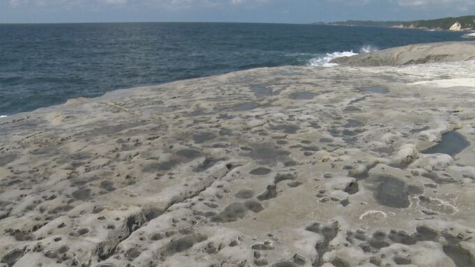実際に波がかかる場所を見てみると、無数の小さな穴が。