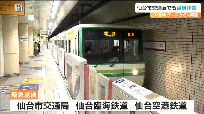 JR貨物が、貨物列車の車輪組み立てデータを改ざんしていた問題で国土交通省は全国の鉄道事業者などに対し、車輪を緊急点検するよう指示しました。これを受け、仙台市交通局など宮城県内の鉄道事業者も点検作業を行っています。