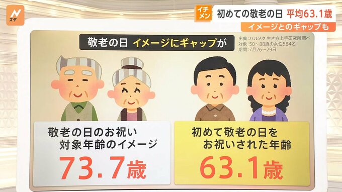 敬老の日のお祝いの対象年齢のイメージについて、ハルメク 生き方上手研究所調べでは、73.7歳だそうです。