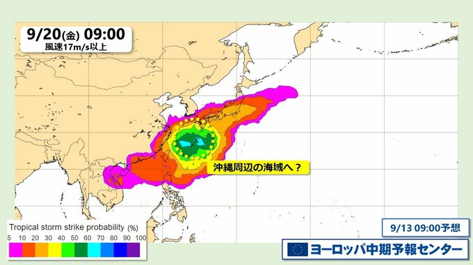 ヨーロッパモデルも熱帯低気圧の発生を示唆 沖縄周辺へ北上予想