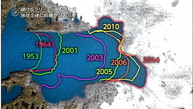 ところが温暖化の影響で氷が溶け、氷河は入り江の奥へ奥へとどんどん後退していて、特に2000年頃からそのスピードが加速しているのです。