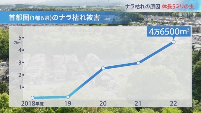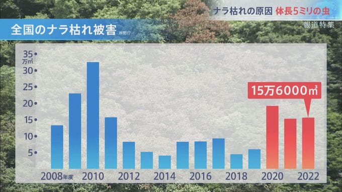 ナラ枯れは1980年代から広がり、2010年度をピークに一度は減ったが、ここ数年で再び拡大。