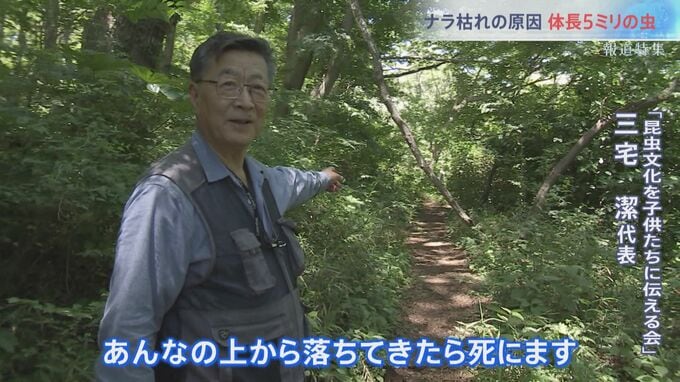 カブトムシをとるツアーの主催者も、この夏はナラ枯れによる事故を警戒している。