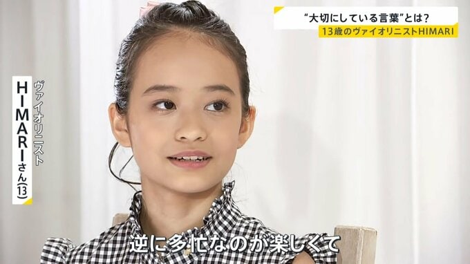 「目を閉じて聴くと子どもが弾いているとは思えない」そうプロの演奏家が評するのは13歳のヴァイオリニスト、HIMARIさん。年末には、初の全国ツアー。来年3月にはベルリン・フィルとの共演を控えています。そんな彼女が大切にしている言葉とは?演奏も交え、その素顔に迫ります。