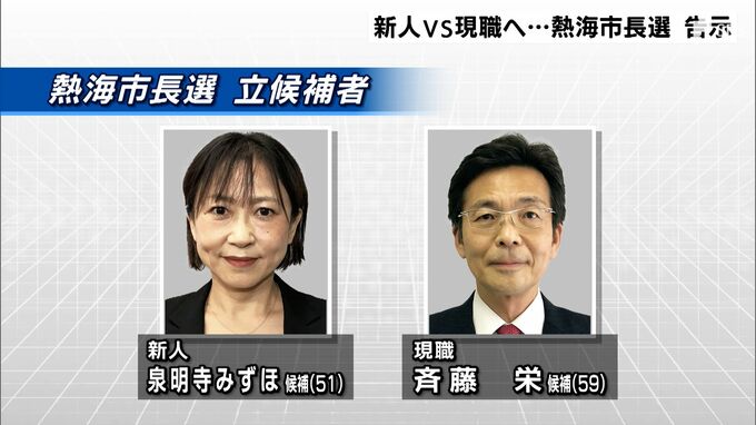 任期満了に伴う熱海市長選挙が4日告示され、正午までに新人と現職の2人が立候補の届け出を済ませました。一騎打ちの選挙戦となる見込みです。熱海市長選に立候補しているのは、届け出順に無所属の新人で元熱海市議…