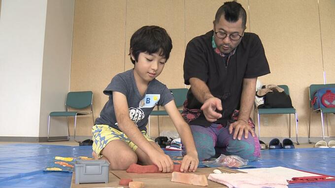 西原町にある県立埋蔵文化財センターでは15日、縄文土器を作りながら当時の人の技術や思いに触れてもらおうと土器づくりの体験会が開かれ、普段発掘調査や遺跡の分析などに携わる専門職員が、子どもたちに当時の手法を用いた土器の作り方を指導しました。