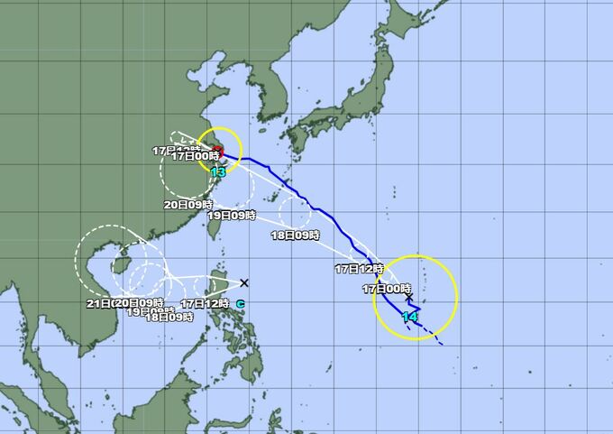 「トリプル台風」発生か…「新たな台風」24時間以内に発生する可能性 日本の南「熱帯低気圧」が発達 進路は?日本への影響は? 「台風14号」「台風13号」進路は? 山陰放送 2024年9月16日(月) 16:05 国内 気象庁HPより 気象庁HPより 気象庁HPより