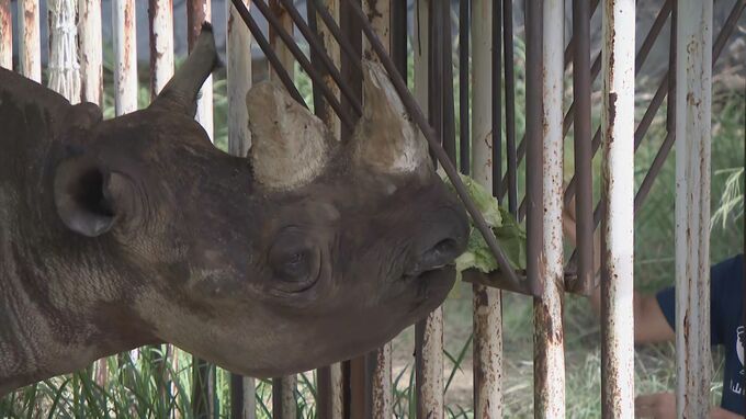 また、16日は【敬老の日】ということで、9月10日に国内最高齢=38歳の誕生日を迎えた、メスのクロサイ「アイ」の長寿を祝うイベントが行われました。