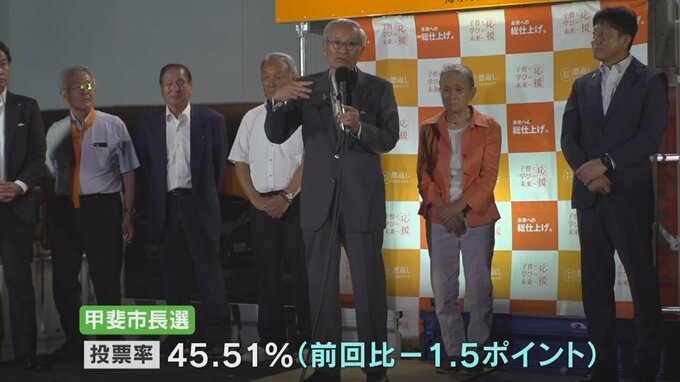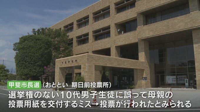 一方、甲斐市長選では、14日に期日前投票所で選挙権のない10代の男子生徒に母親の投票用紙を誤って交付するミスがあり、実際に投票が行われたとみられるということです。