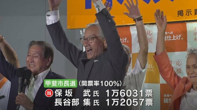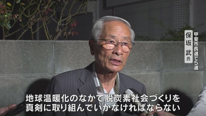 現職と新人の一騎打ちとなった山梨県甲斐市の市長選挙は15日の開票の結果、現職の保坂武さんが5期目の当選を果たしました。