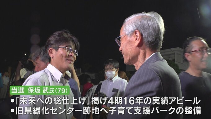 現職の保坂武さんが1万6031票を獲得し、新人で前市議会議員の長谷部集さんに約4000票の差をつけ5期目の当選を果たしました。
