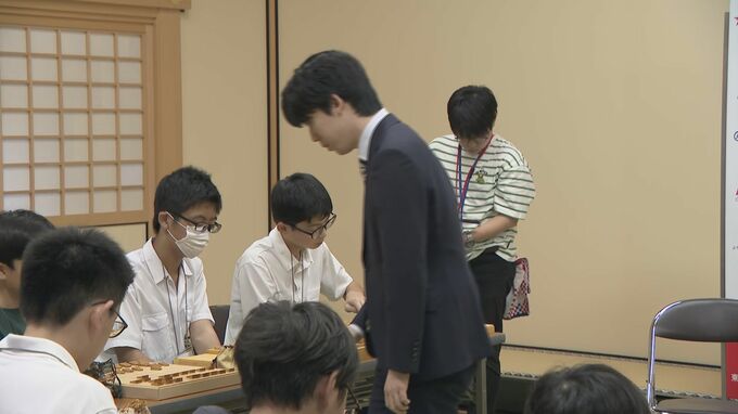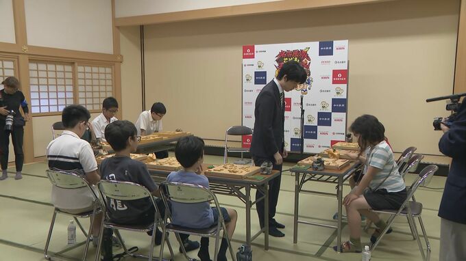 そして15日、名古屋城の本丸御殿で行われた「名古屋城こども王位戦」には愛知県瀬戸市出身の藤井聡太七冠が登場。藤井七冠は小学生から中学生の9人を相手に対局し、将棋盤の前をぐるぐると移動しながら、真剣な表情で将棋を指します。対局後には柔らかい表情で後輩たちにエールを送りました。