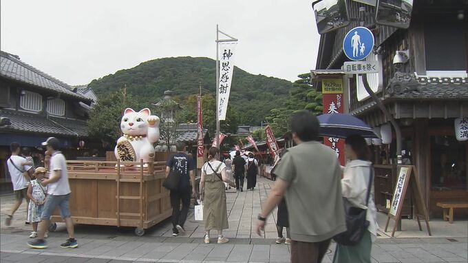 三重県伊勢市の「おかげ横丁」も3連休大賑わいでした。おかげ横丁では、「来る福(くるふく)招き猫まつり」が行われていて、全国各地から集められた招き猫など約1万点が展示・販売され、観光客を出迎えます。ただ、15日の伊勢市の最高気温は32.3℃とこの暑さには戸惑いの声も。