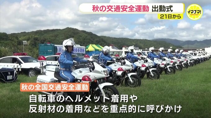 21日から始まる秋の全国交通安全運動を前に、16日、広島県福山市で出動式が行われました。福山市の芦田川河川敷で行われた出動式には、則包卓嗣 県警本部長など、関係団体からおよそ300人が参加しました。広島県内…