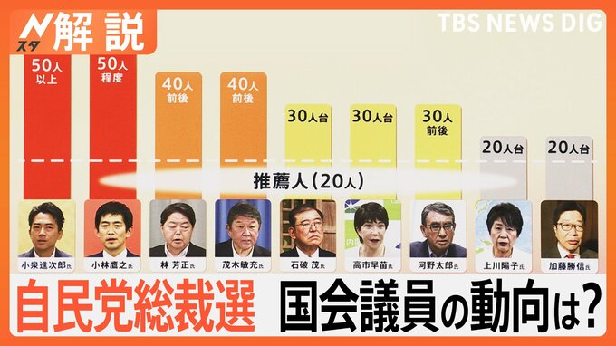 自民党総裁選は、各候補者が能登半島地震の被災地で震災対応などをめぐって主張を戦わせました。こうした中、投票総数の半数を占める国会議員票では小泉進次郎元環境大臣がトップに立っていることがJNNの取材で分…