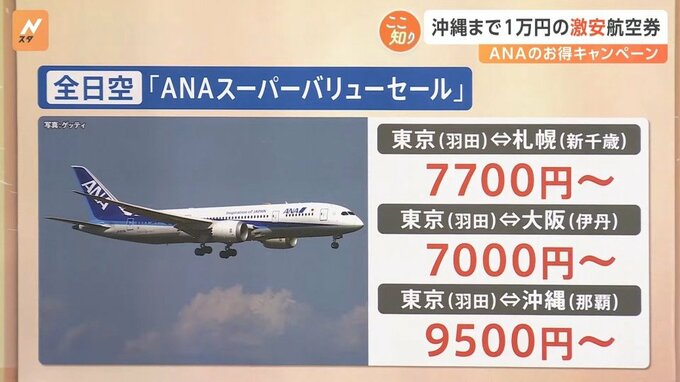 飛行機では、全日空で「ANAスーパーバリューセール」を行っています。