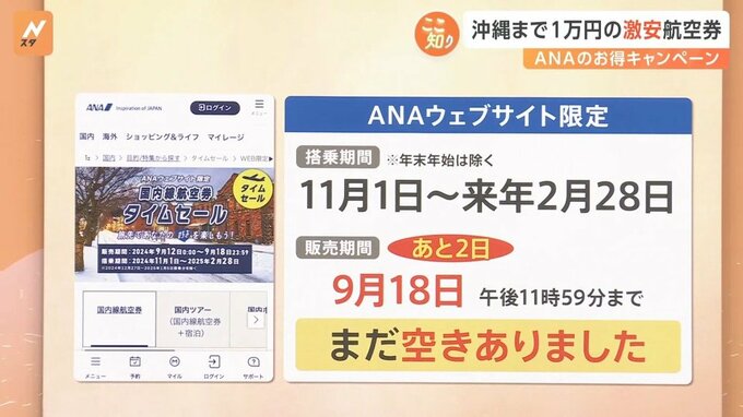 全日空がウェブ限定のセール中 沖縄まで1万円も