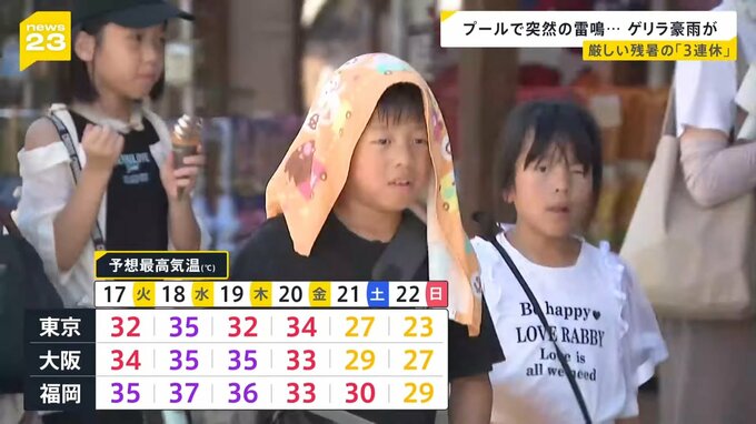 大勢の子どもたちで賑わった福岡市のプールでは、突然、雷鳴が鳴り響き、一瞬でゲリラ豪雨になりました。