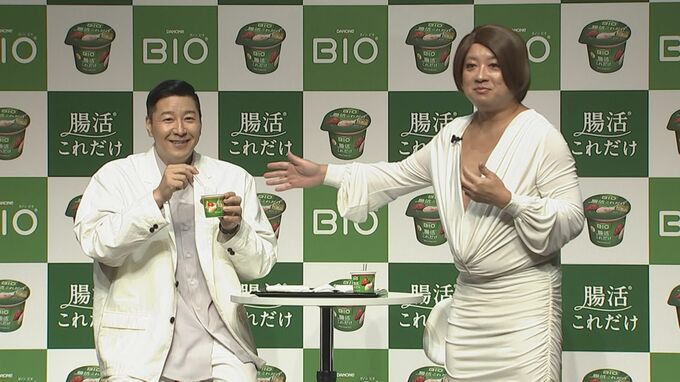 2人と同じように、腸活のやり方に迷う「腸活迷子」が、推定で2000万人いると説明されると、松尾さんは、“腸活迷子どんだけー!”と絶叫。さらに、新製品の名前が「腸活 これだけ」と発表されると“腸活これだけーーー!”と、全力で叫んで会場を笑わせました。