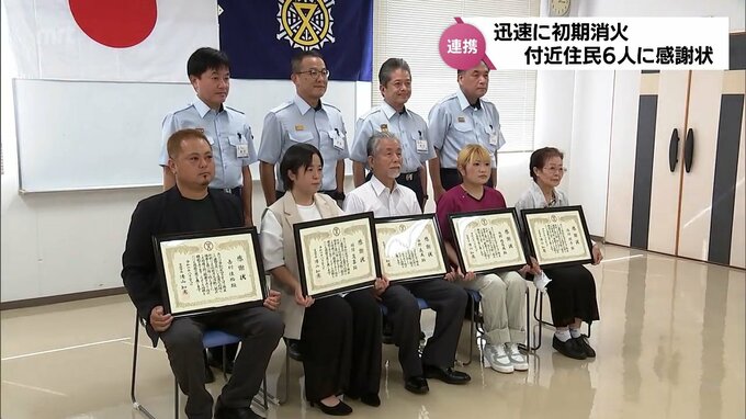 今年4月、宮崎市の住宅で火災が発生した際、迅速に初期消火などを行い、被害を最小限に抑えたとして、付近の住民6人に感謝状が贈られました。宮崎市消防局から感謝状が贈られたのは、市内に住む西村絹子さん(86歳)…