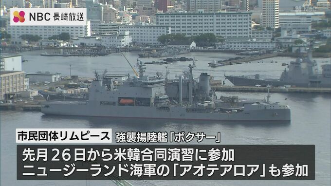 甲板上に並べられた戦闘機はアメリカ海兵隊が運用する最新鋭のF-35B戦闘機です。佐世保に入港したのはサンディエゴを母港とするアメリカ海軍の強襲揚陸艦ボクサーです。市民団体リムピースによりますとボクサーはニュージーランド海軍の補給艦「アオテアロア」とともに先月26日から今月7日まで行われていた米韓合同演習に参加し「アオテアロア」も今月14日から佐世保に寄港しています。
