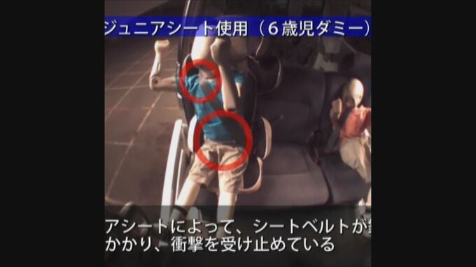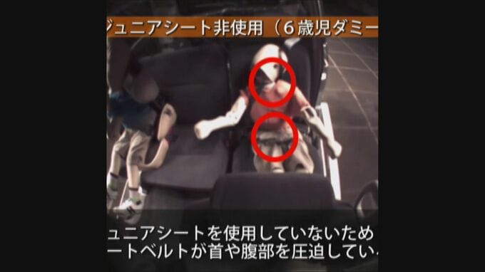 「体格に合っていない状態でシートベルトを着用すると、首やお腹を圧迫して体にダメージを与えてしまう事例が起きている」