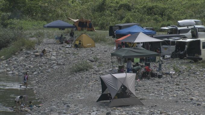 男性によりますと、10年程前から目の前の河川敷でバーベキューやキャンプをする人が増え始め、毎年ゴールデンウィークの頃から週末を中心に人が集まるようになったということです。