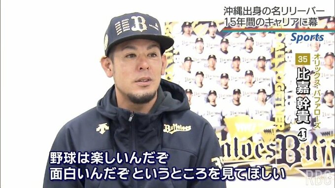沖縄市出身、今シーズン、プロ15年目を迎えていたオリックス・バファローズの比嘉幹貴投手。