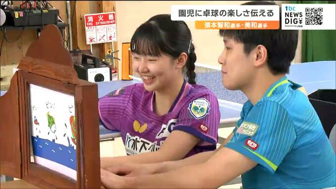 パリオリンピック™に出場した張本智和選手と美和選手を招いた卓球教室が宮城県名取市の認定こども園で開かれました。2人は、子どもたちと交流しながら、卓球の楽しさを伝えました。名取市の閖上わかばこども園で…