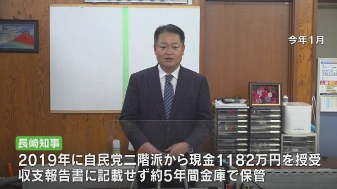 この問題は長崎知事が自民党二階派から現金1182万円を受け取りながら資金管理団体の収支報告書に記載せず、およそ5年間金庫に保管していたものです。