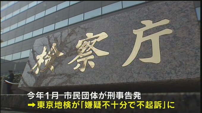 この不起訴処分を不服として刑事告発を行った市民団体が17日、東京地裁の検察審査会に申し立てを行いました。