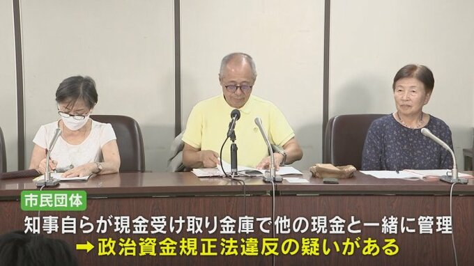 不起訴処分後の知事の記者会見で新たに明らかとなった自らが現金を受け取ったことや、その現金を金庫で他の現金と一緒に管理していたことなどから改めて政治資金規正法違反の疑いがあるとしています。