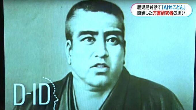 こちらの西郷隆盛、せごどんの肖像画。実は…(AIせごどん)「さいごうでごわす。方言を好きになってくいやんせ」今、開発が進められている、鹿児島弁を話すことができるという人工知能の「AIせごどん」です。「AI…