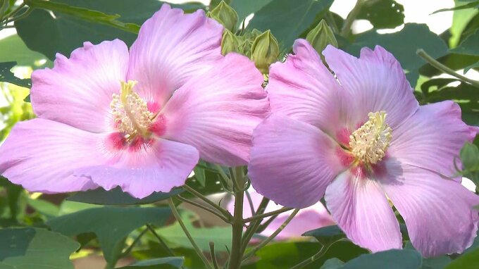 夏から秋にかけて美しい大きな花を咲かせるフヨウが、大分県杵築市の寺で見ごろを迎えています。370年以上の歴史がある杵築市の妙高山宗玄寺では境内におよそ400本のフヨウが植えられています。フヨウは、九州や四…