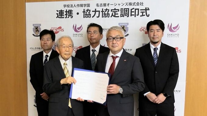 作陽学園とフットサルの強豪チーム名古屋オーシャンズが協力して地域活性化などに取り組む協定を結びました。くらしき作陽大学で調印式が行われ、作陽学園の松田英毅理事長と名古屋オーシャンズの櫻井嘉人代表取締…