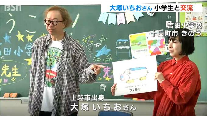 BSN新潟放送のキャラクター『ハレッタ』の生みの親で、新潟県上越市出身のイラストレーター・大塚いちおさんが十日町市の小学校を訪れ、子どもたちと交流しました。