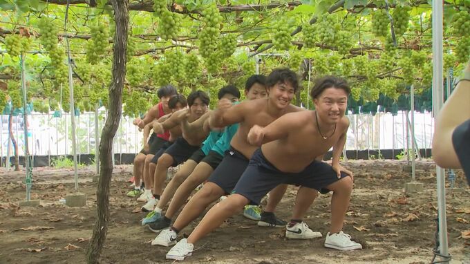 「スイカと比べて負荷になりづらいので、いかに筋トレの要素を入れるかということで、このブドウ農園全体を使った筋トレを考えました」