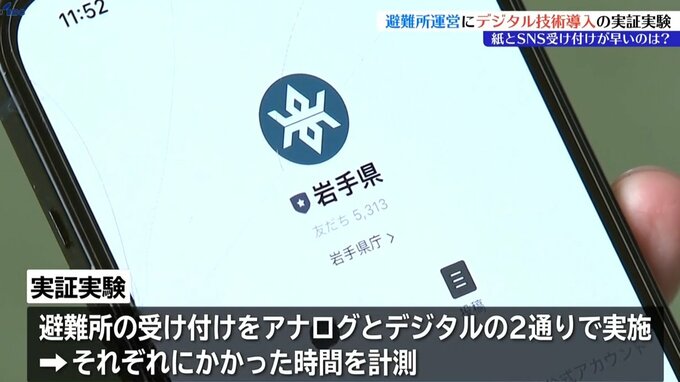 この実証実験は、大雨や地震などの災害時に避難所運営を円滑に進めるのにデジタル技術か有効かどうかを確認するため岩手県が初めて行ったものです。