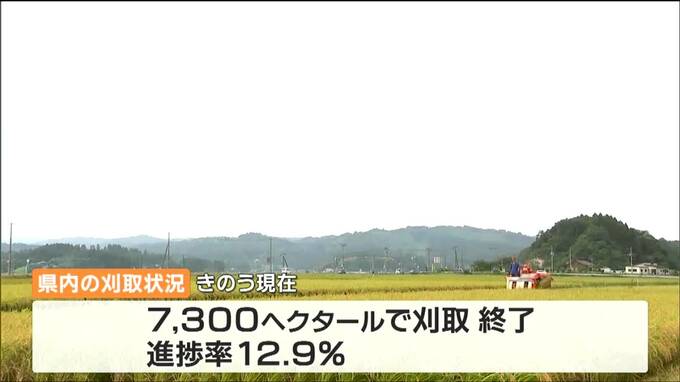 県によりますと、県内の田んぼでは17日現在、7300ヘクタールで刈り取りを終えていて進捗率は12.9パーセントとなっています。