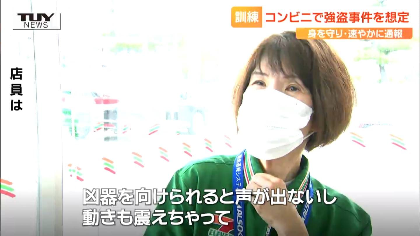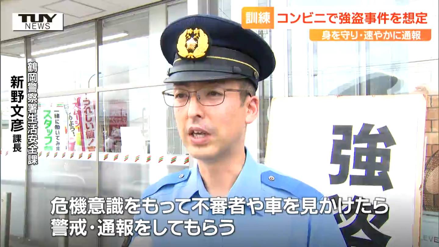 先月13日に酒田市のコンビニエンスストアで鎌を持った男が店員に金を出すよう求めた事件を受け、きょう鶴岡市のコンビニエンスストアで強盗事件を想定した対応訓練が行われました。