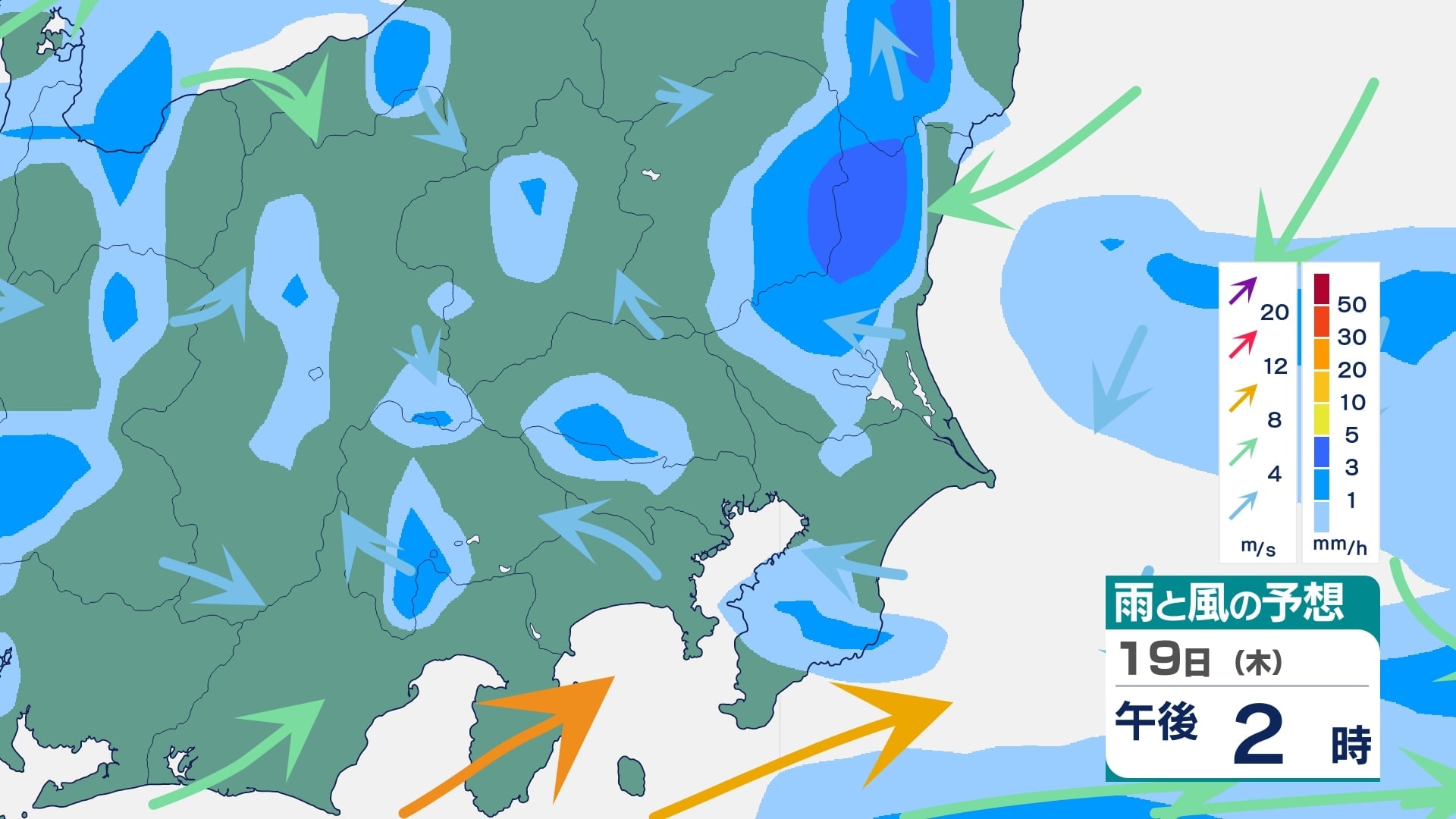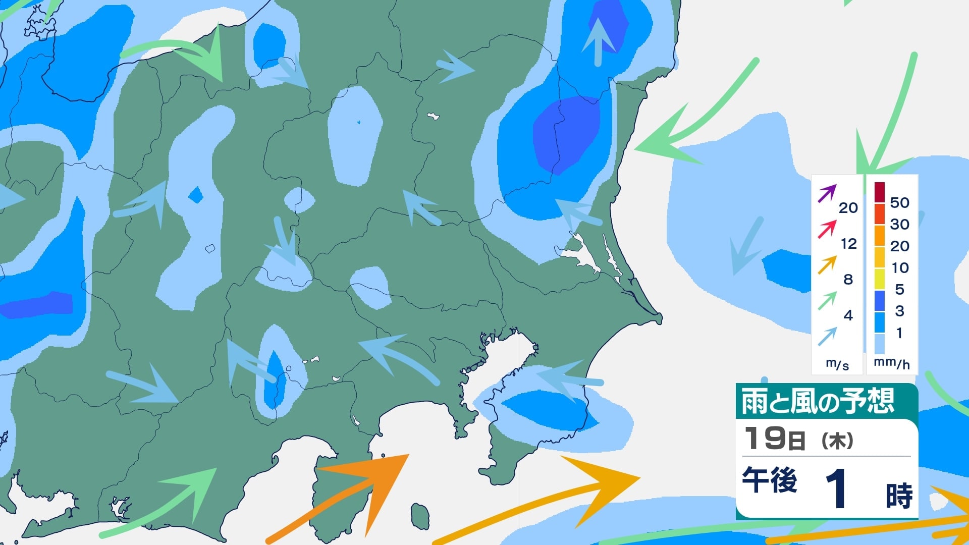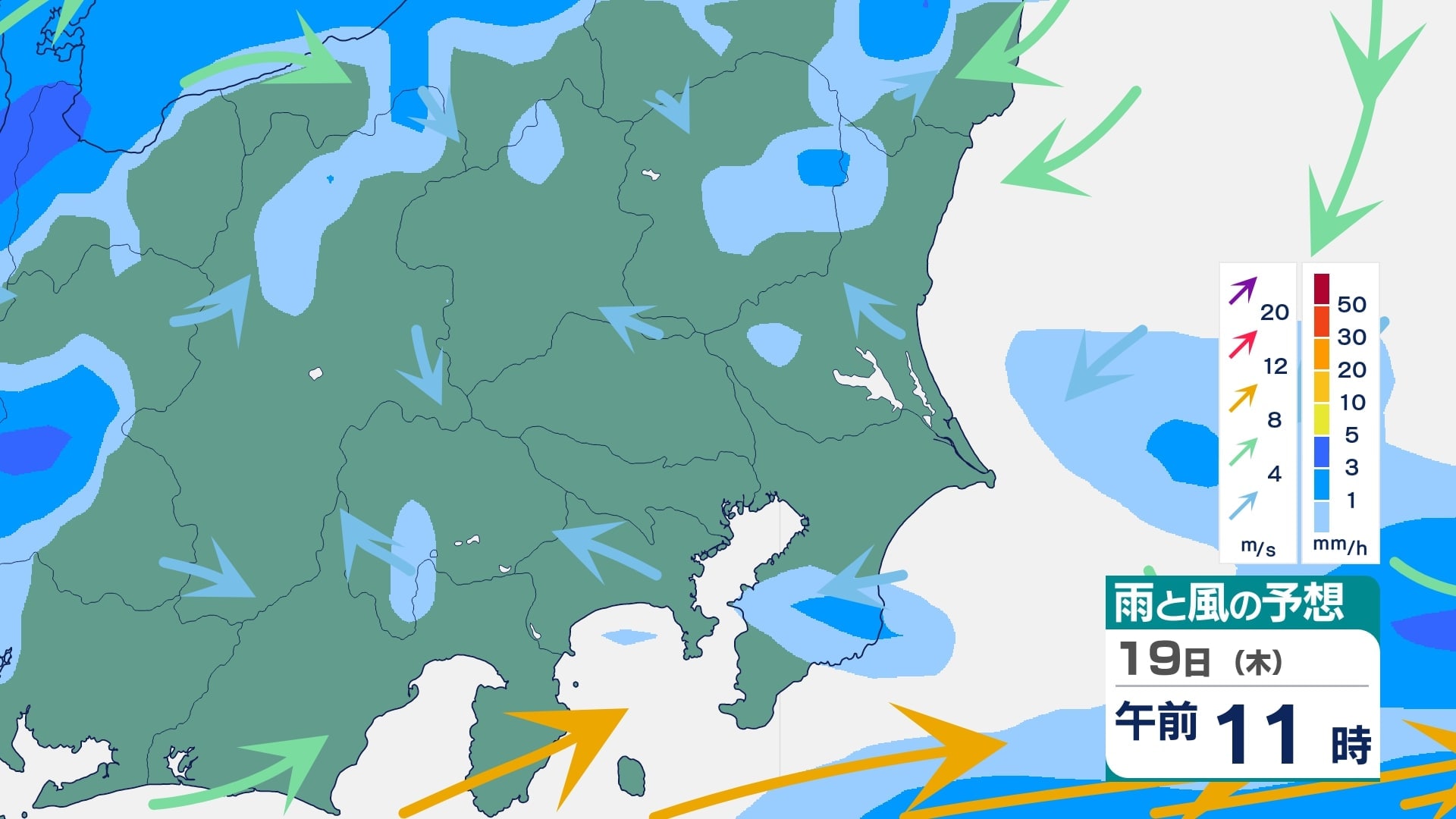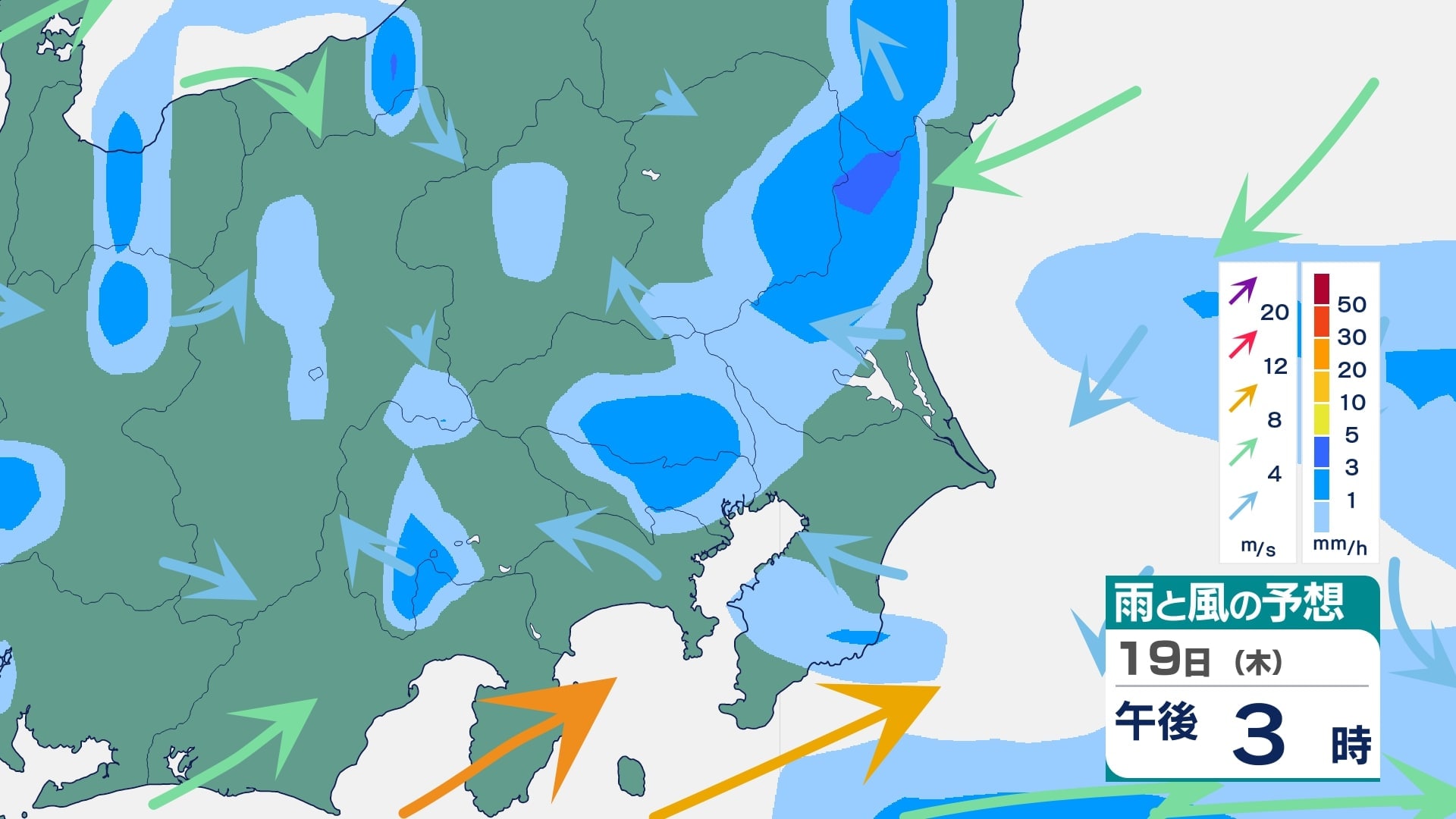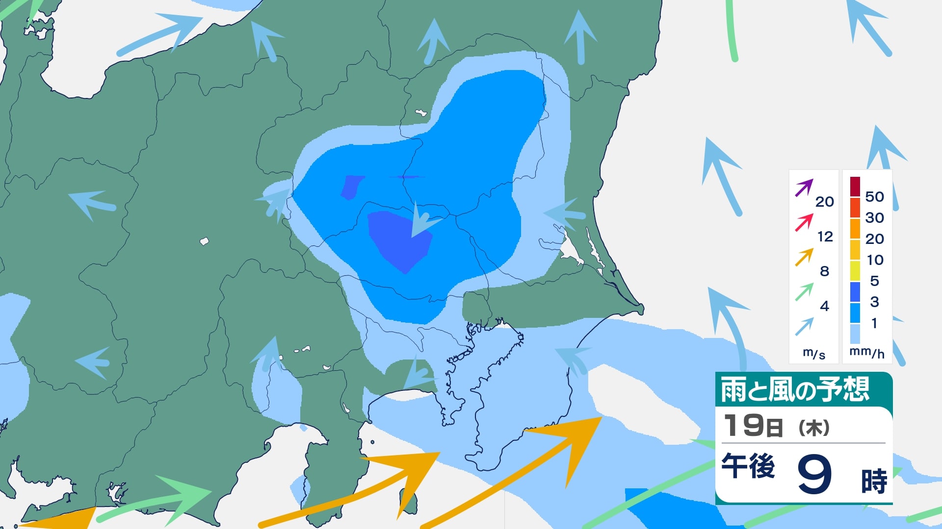 【関東甲信】今夜遅くにかけ“滝のような非常に激しい雨”の降る所がある見込み 1時間予想降水量は関東南部70ミリ 甲信60ミリ 関東北部50ミリ 土砂災害や低い土地の浸水などに厳重警戒を 【23日までの雨風シミュレーション】 チューリップテレビ 2024年9月18日(水) 18:39 国内 天気 19日の雨風シミュレーション